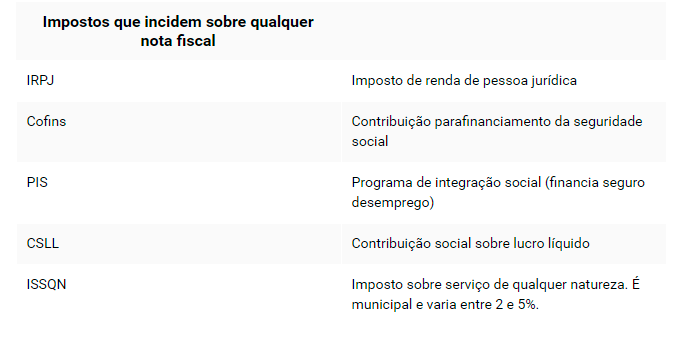 Para determinados tipos de serviços, pode haver uma retenção de 11% de INSS (imposto incidente sobre a folha de pagamentos).